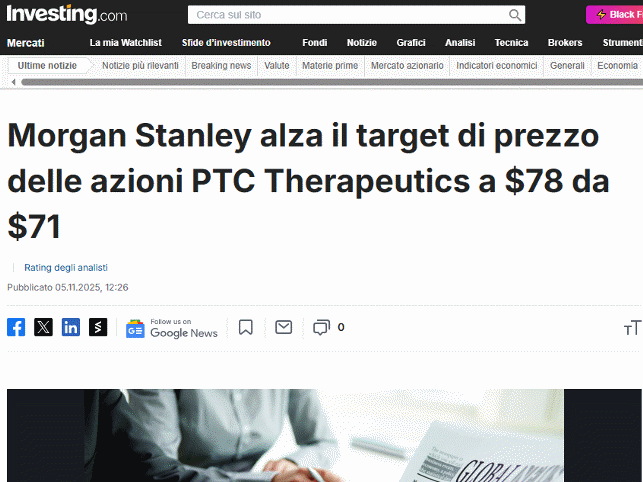 Morgan Stanley alza il target di PTCT a $78 da $71