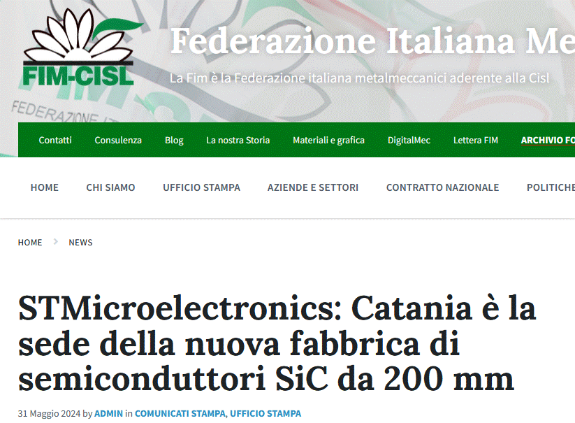 Per il Segretario nazionale FIM Massimiliano Nobis e Pietro Nicastro Segretario generale FIM Sicilia: “Un annuncio di straordinaria importanza che rende centrale Catania e la Sicilia nel panorama dell’industria dei semiconduttori in Europa”. Tutto il ciclo integrato in unico plesso industriale che rilancia la nostra città nella sfera dei siti altamente tecnologici e industrializzati e con notevoli riflessi occupazionali per il territorio, annunciati 3000 posti di lavoro”.